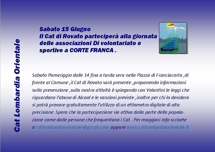 Evento del Cat a Corte Franca il Sabato 15 Giugno dalle 14 .00